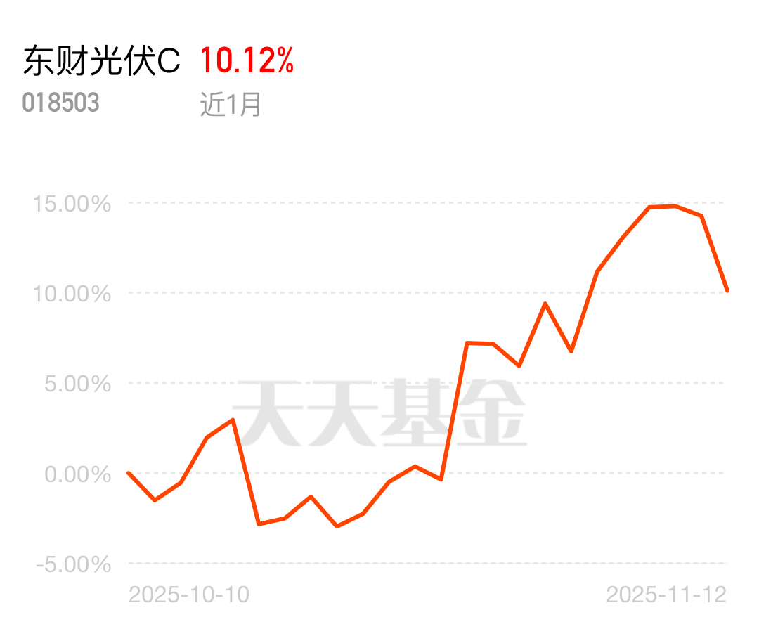 现在光伏产业链价格企稳回升,头部企业引领技术迭代,作为反内卷总龙头,全球市场份额持续扩大。西藏东财中证光伏产业指数C近1个月上涨10.12%,出海数据一路向好,A股正处于抄底窗口期,等着牛市继续冲高,我已经果断梭哈!$东财光伏C$