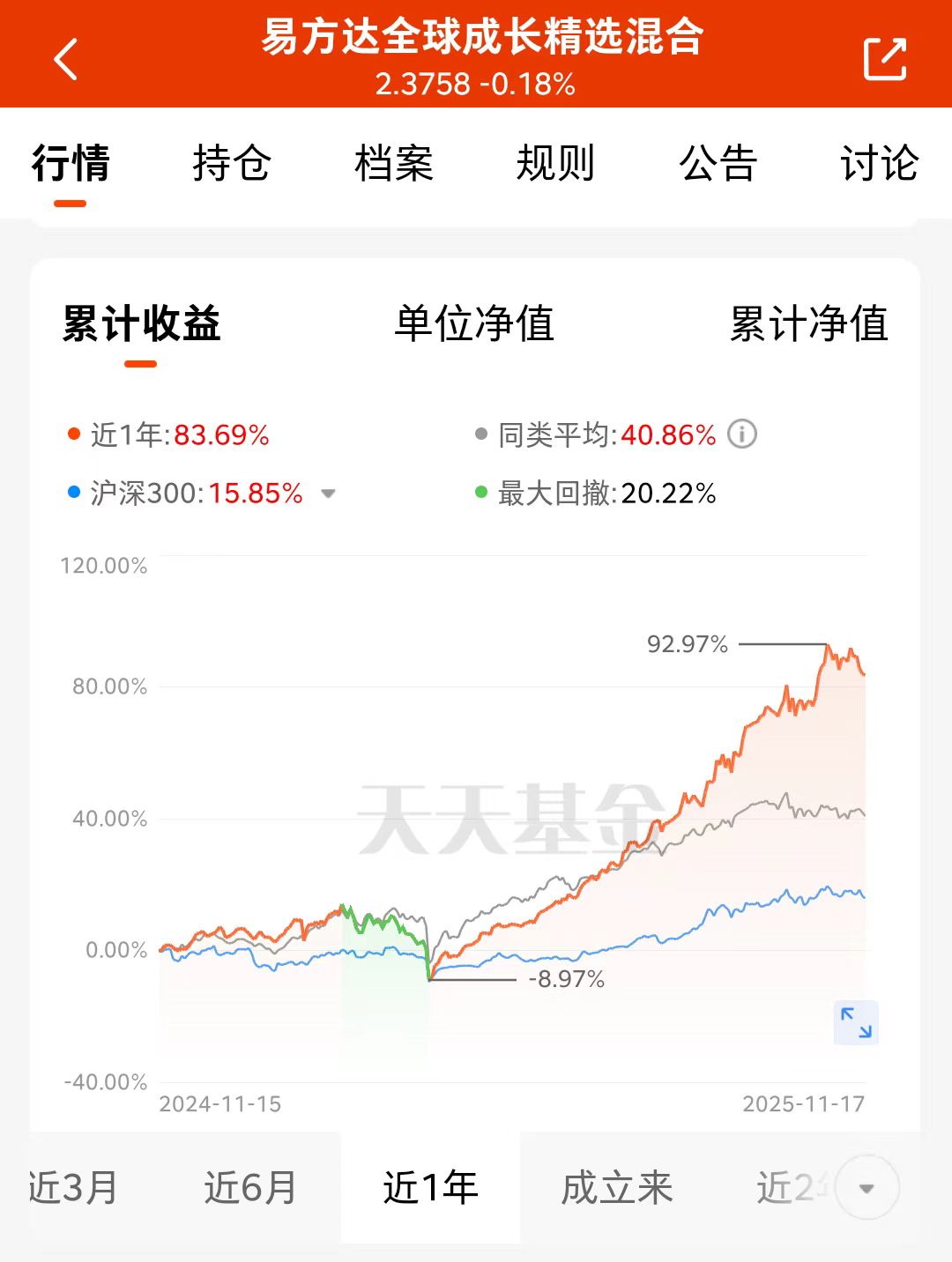 股市行情震荡,但是易方达全球成长精选混合(QDII)人民币C一键布局美股、港股、A股三地市场,回撤控制的好,业绩稳定,而且从他公开的季报里看出对全球市场的敏锐布局,不管长期还是短期业绩都验证了基金经理的精准预判和灵活调仓能力,能有效避免单一市场踏空呢,可以关注一下。