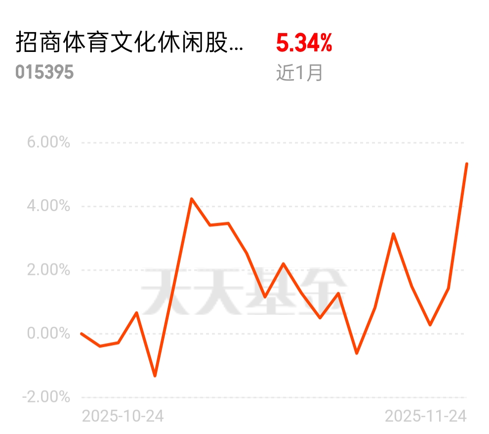 体育消费增速高出整体水平,文化产业潜力释放,中证传媒指数今天涨超2.1%。招商体育文化休闲股票C表现亮眼,近1个月涨5.34%,昨日涨幅3.85%,布局高景气赛道,收益有保障。