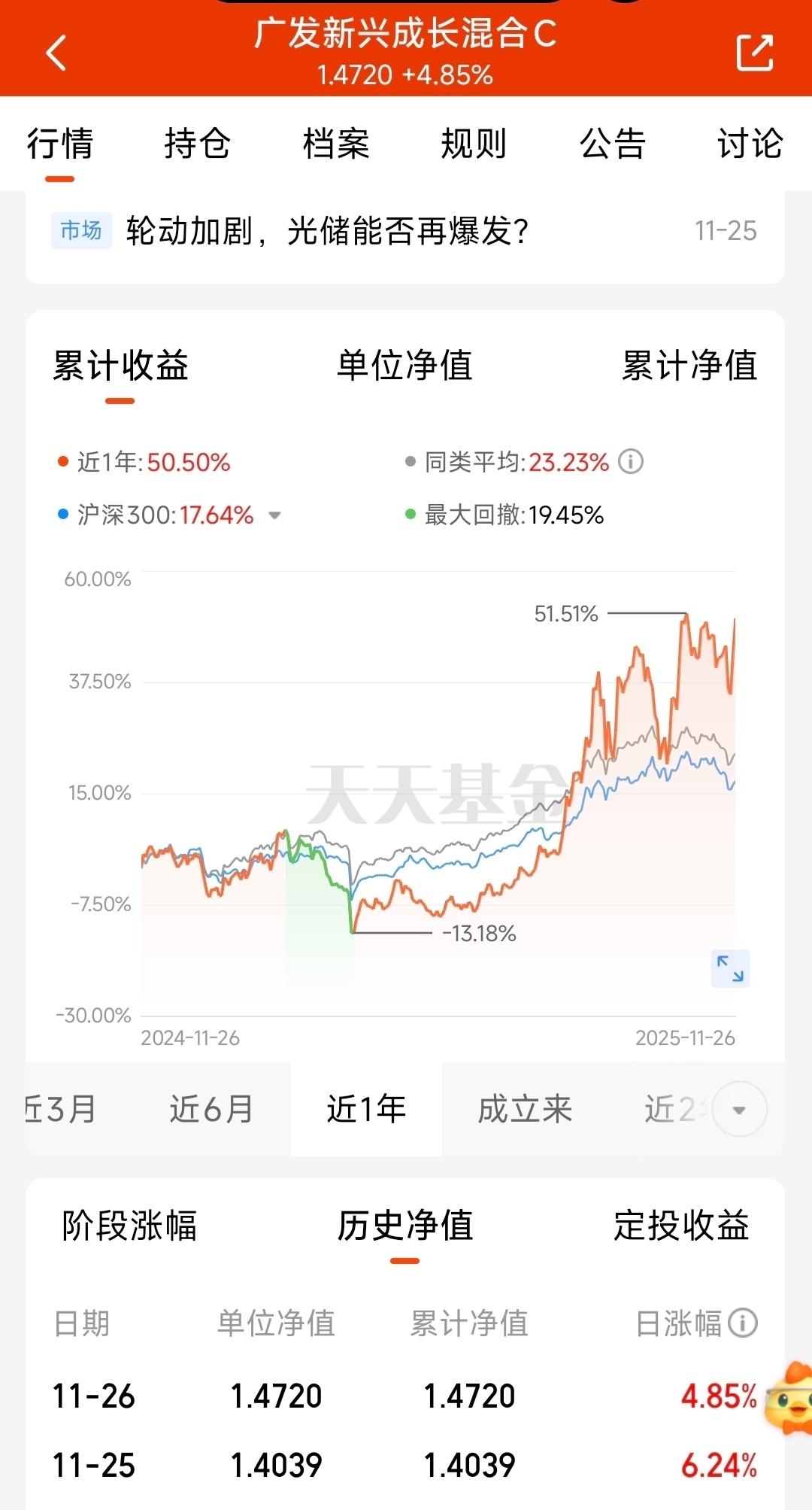 近两天累计涨幅全市场第一!这什么实力不多说$广发新兴成长混合C$ 我还能加仓!