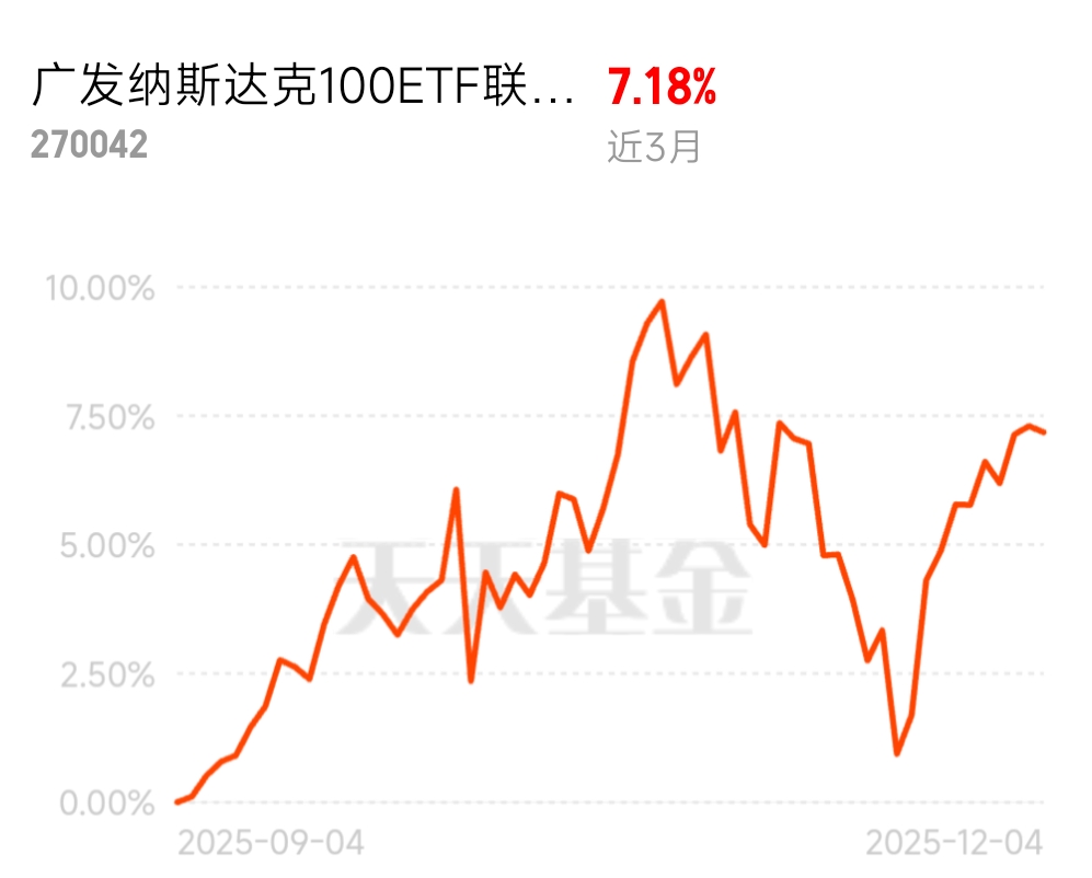 我现在都是建个计划自动投,反正纳指长期投就不会亏的$广发纳斯达克100ETF联接人民币(QDII)A$