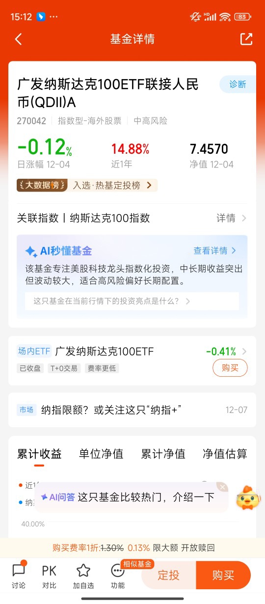 定投一年也快15个点了,不用猜行业轮动,不用择时,懒人理财直接冲纳指就行