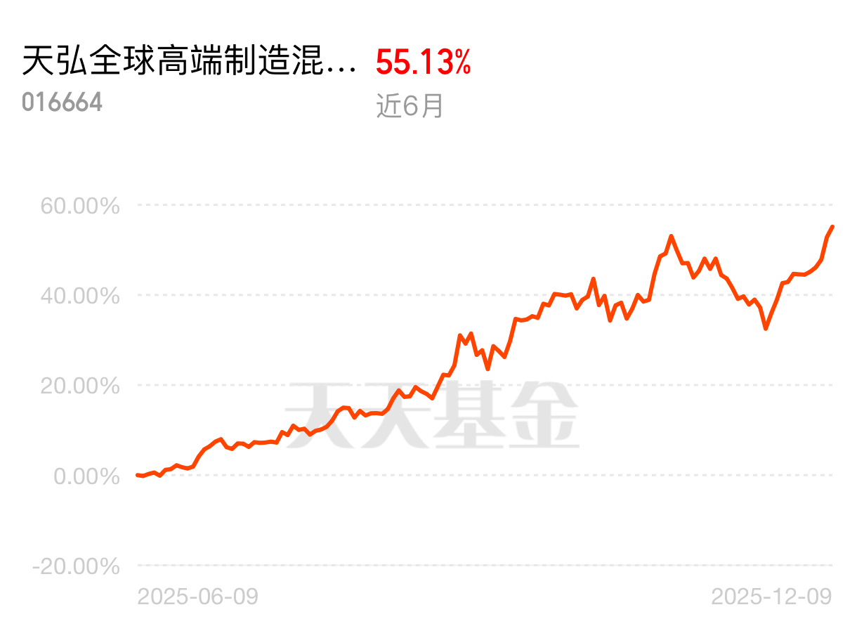 纳斯达克都限额好严重啊,$天弘全球高端制造混合(QDII)A$近一年业绩快50%