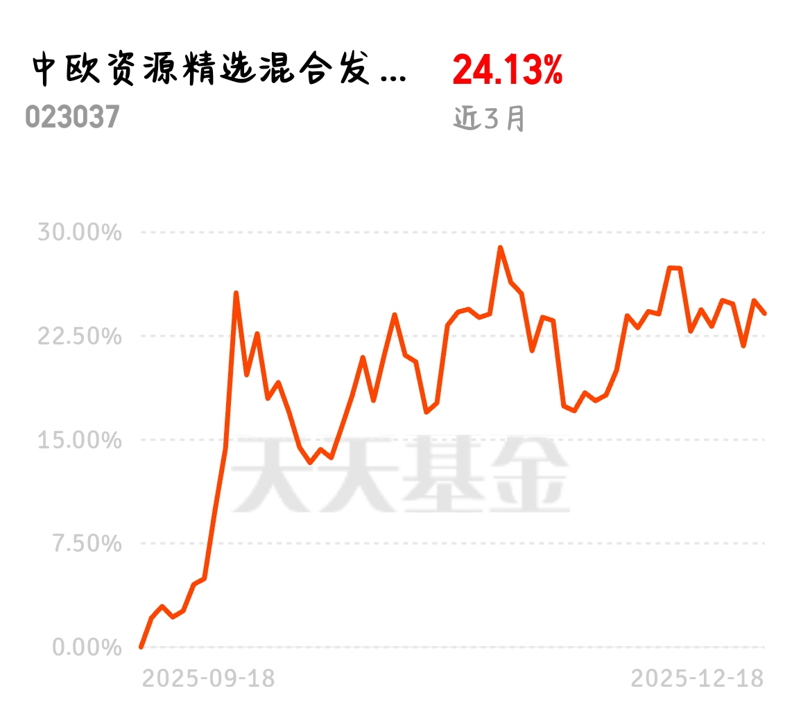 现货白银突破 65 美元,低库存引发供需矛盾,叠加国家资源保障政策,资源板块热度攀升。中欧资源精选混合发起 C 近 3 个月 24.13%,行业集中度高,主题鲜明收益更聚焦。$中欧资源精选混合发起C$