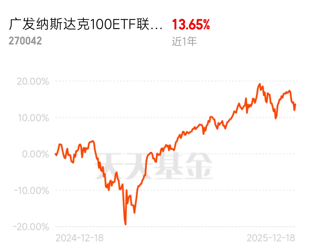 兄弟们,今天纳指还能涨吗,我再加投10块$广发纳斯达克100ETF联接人民币(Q