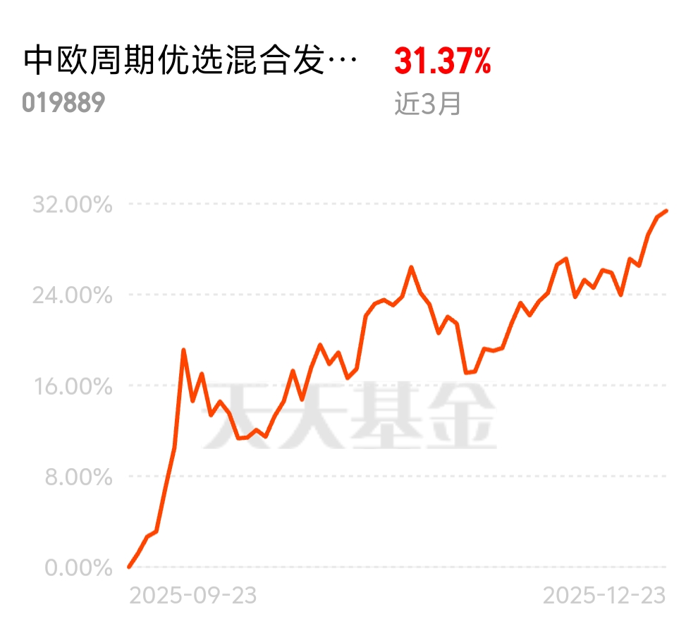 新基建周期启航,电力电网和数据中心用铜需求暴增。中欧周期优选混合发起 C 近 3 个月 31.37%,重仓工业金属直接受益,短期涨势强劲,配置正当时。$中欧周期优选混合发起C$