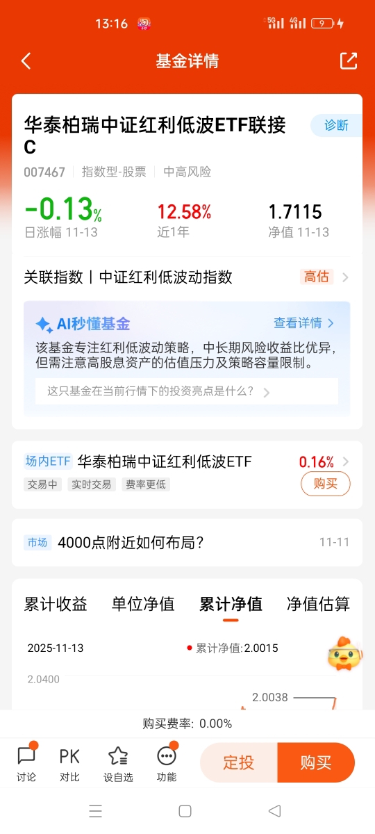 今天红利低波微跌,但这行情里它算是很稳的了。很多人四季度都想守住今年收益,华泰柏瑞的这只产品就很合适。它投的都是高股息、波动小的资产,能在市场波动时减少收益回撤,让你稳稳保住今年的收益,不用再为行情波动而焦虑。$华泰柏瑞中证红利低波ETF联接C$ #科技小登大揭秘#