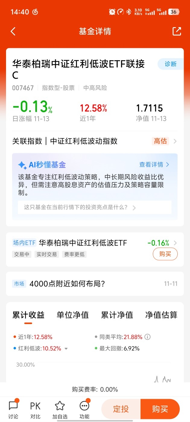 $华泰柏瑞中证红利低波ETF联接C$ 实。