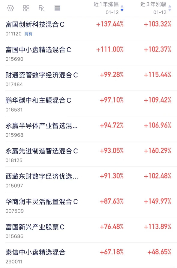 $富国创新科技混合C$ 年涨幅137%