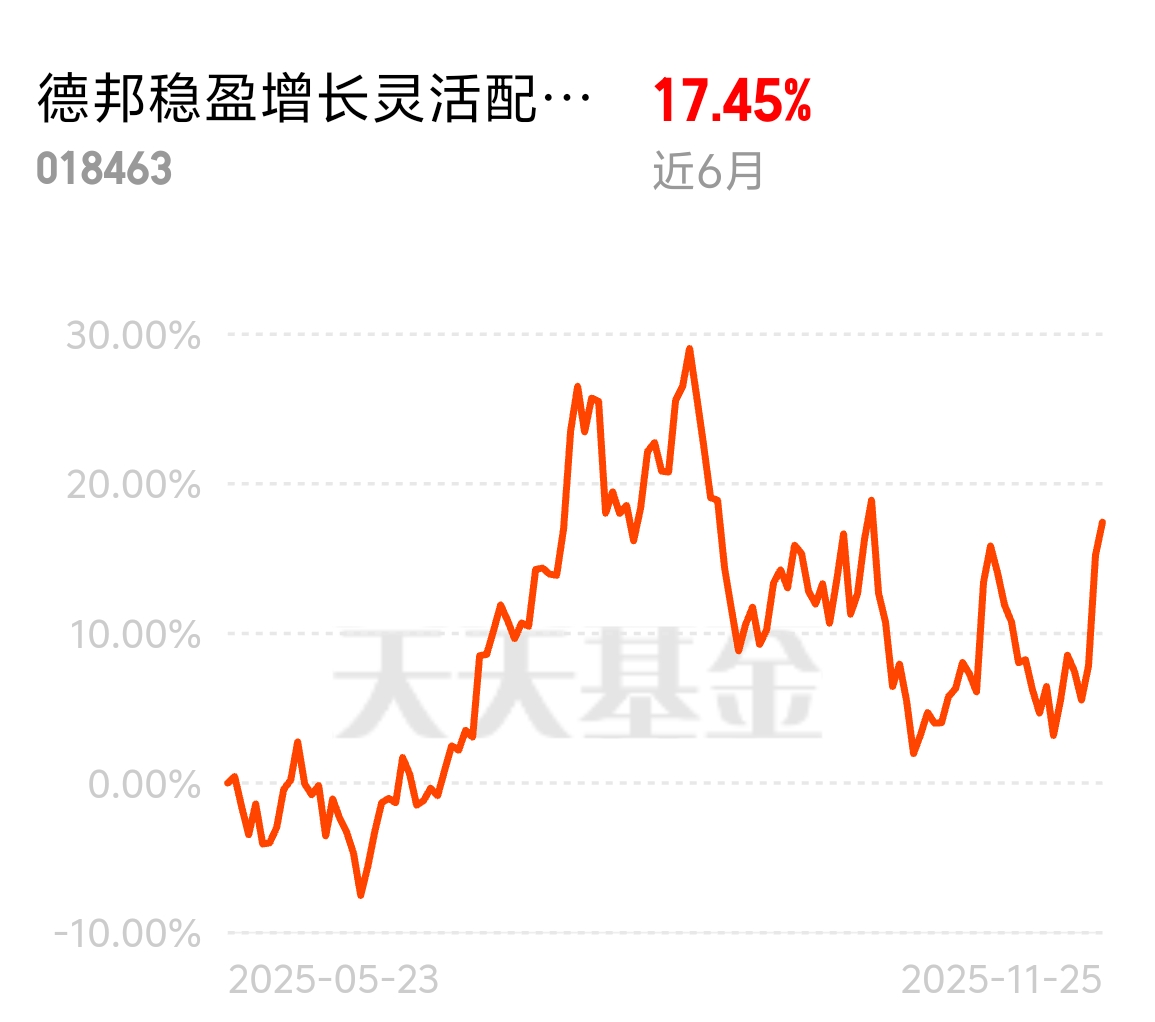 AI行情全面启动,市场上不少基金都在跟风涨,但业绩参差不齐,德邦稳盈增长灵活配置混合C近6个月收益17.45%,同类里表现顶尖,这波至少20个点的空间,别错过红利。