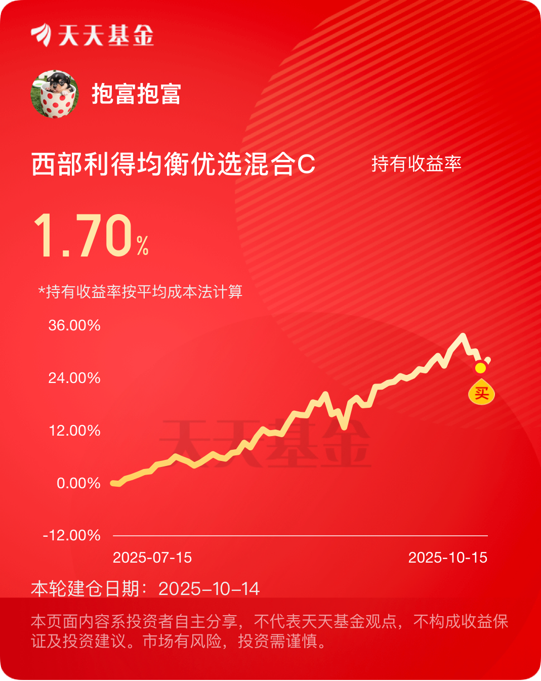$诺安成长混合A$ 昨天涨了0.57%,也好了,没有亏,$西部利得均衡优选混合C$ 昨天涨了1.73%,吃了一口肉,我看也很不错,波动相对也可以接受,希望后续带飞!#晒收益#