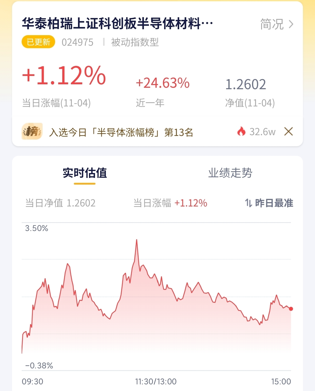 . 刚看了下今天的行情,科创半导体设备板块表现是真亮眼,大盘跌的时候它能稳住,足见资金有多青睐这个赛道。这背后逻辑很清晰,不管是汽车芯片还是AI算力,都离不开半导体设备,行业回暖迹象特别明显,多家公司去年营收利润都双增长了 。现在估值处于合理区间,正是布局的好时候。不过自己选公司太费劲,不如投华泰柏瑞的产品,人家专门盯着这个板块,相当于一键上车。关键是C类门槛不高,操作也简单,老基金公司实力也靠谱,就是得做好接受短期起伏的准备。$华泰柏瑞上证科创板半导体材料设备主题ETF发起式联接C$