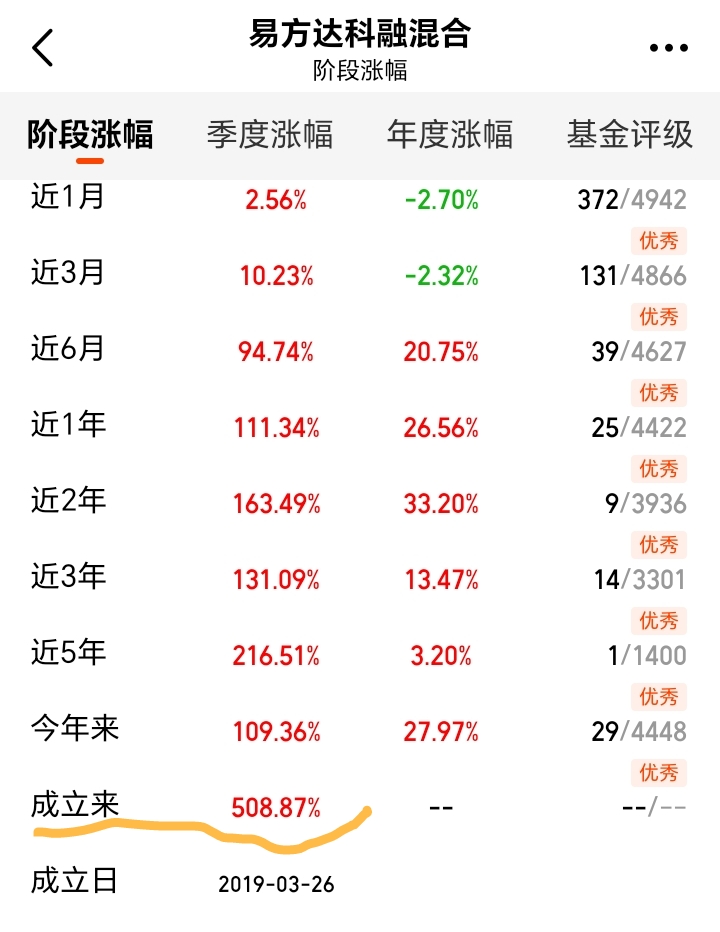 最近关注的$易方达科融混合(OTCFUND|006533)$感觉还不错,主打科技核心+多赛道轮动,六年实现五倍涨幅,业绩相当亮眼。更难得的是能涨抗跌,夏普比率突出,既能跟上科技成长机会,又能分散风险,持有体验确实舒服。
