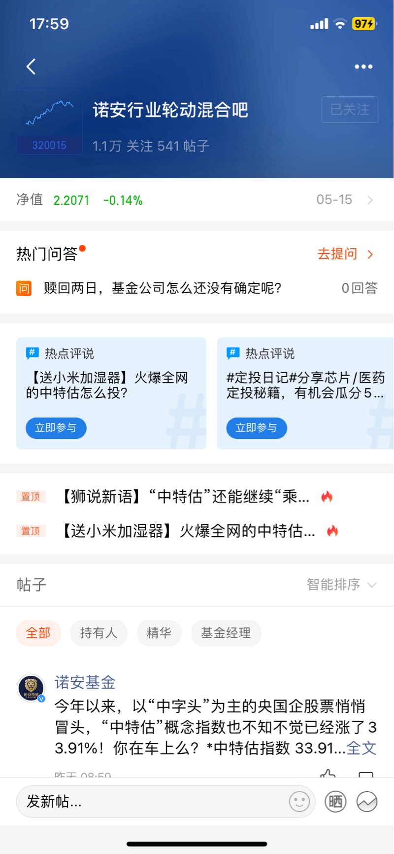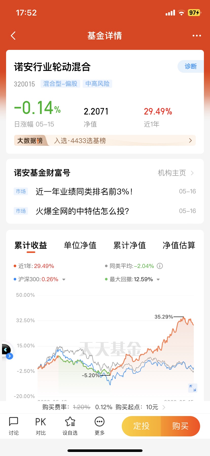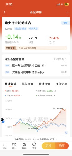 诺安行业轮动,基金经理韩冬燕,整体均衡配置,但每年都会有侧重,最近一次的加仓是就是通信行业,结果踩中信创风口大涨,近一年收益30%,业绩十分亮眼!本次又提前布局通信、能源、石化等“中特估”概念股,前瞻捕捉中国特色估值体系投资机遇,感兴趣的同学可以加关注了!
