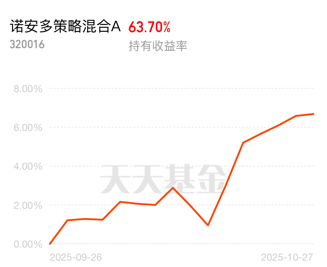 $诺安多策略混合A$经历了这几个波动比较大的周期,发现这个基金都能拿回来,所以就