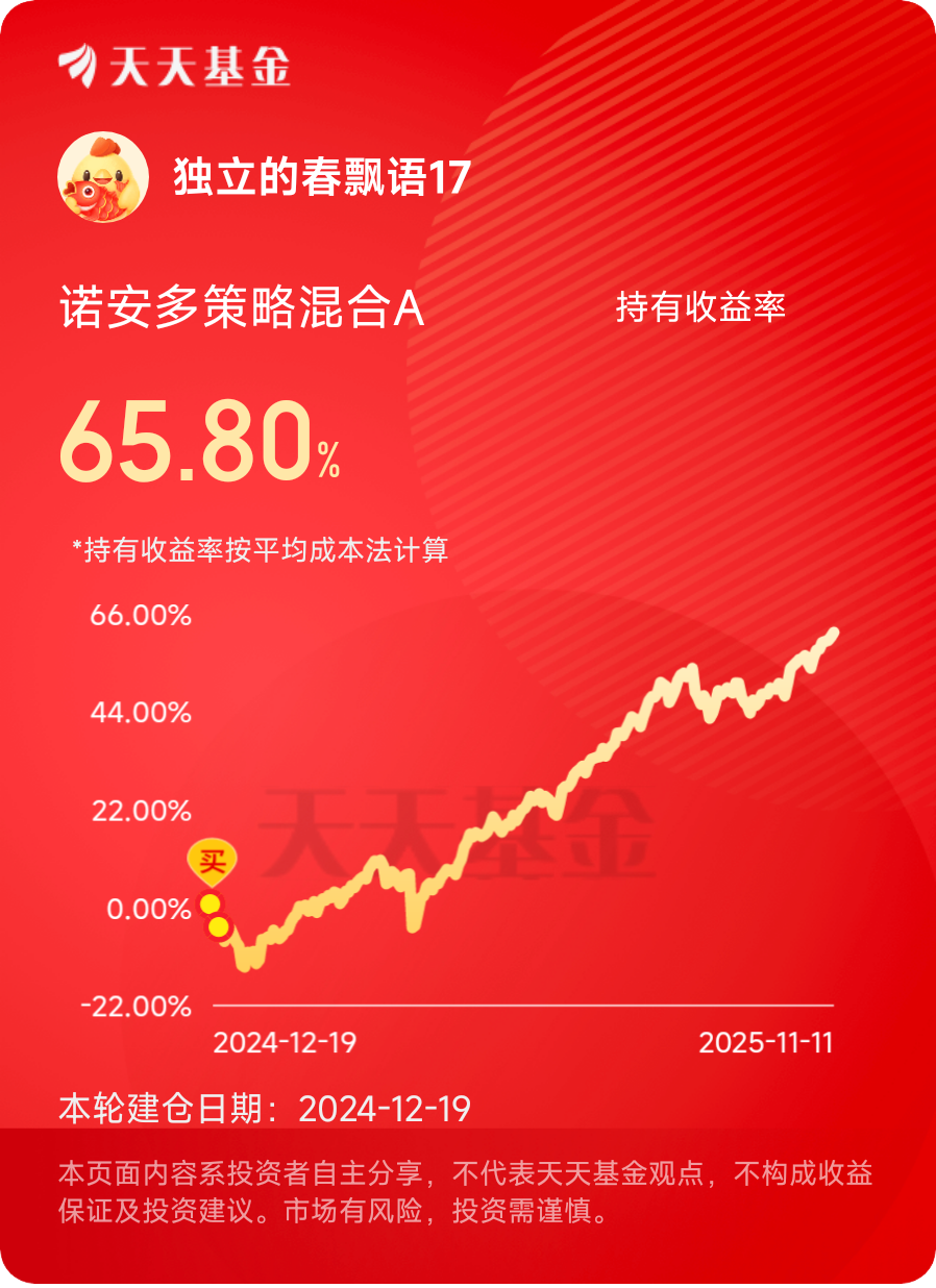 八天连涨啊,诺安这微盘基着实亮眼啊,咱也吃到一波行情,奈斯。。