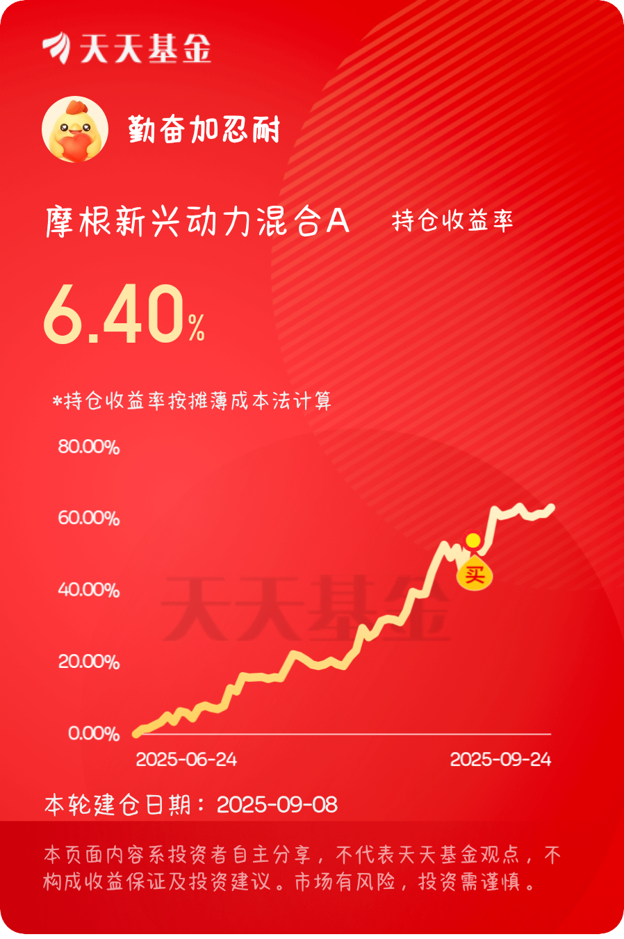目前的估值深得我心,这波必须得入了$摩根新兴动力混合A$ #晒收益#