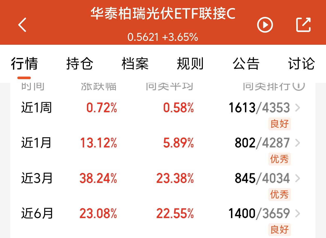 光伏今天表现真强,板块涨了3.65%领跑。我关注的华泰光伏更厉害,近一年收益高达