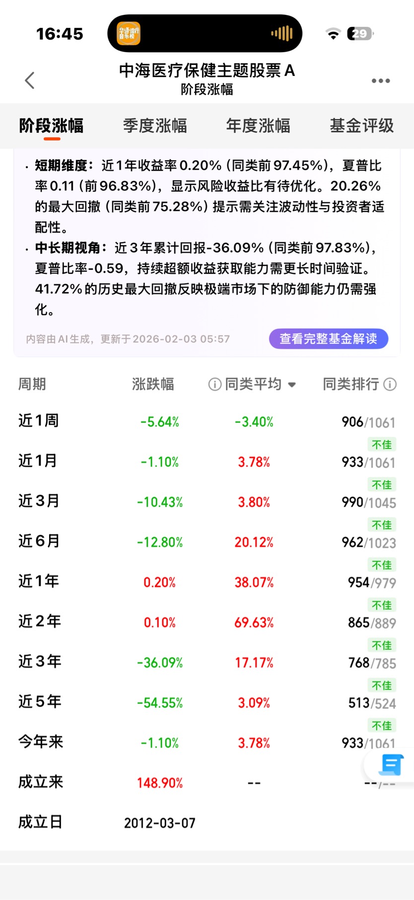 $中海医疗保健主题股票A[399011]$