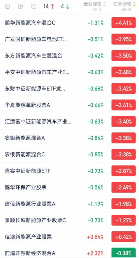 新能源基金估值午间播报,快捷查看涨跌,期待周一开门红