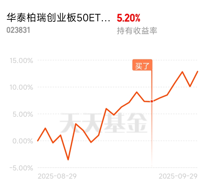 固态电池大涨,$华泰柏瑞创业板50ETF联接C$今天涨2.53%,近一个月12.