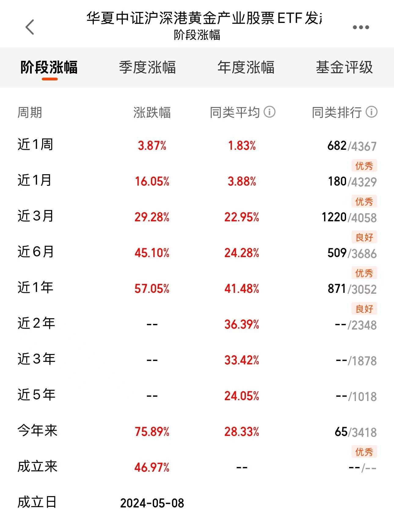 八部门出手力挺有色金属,昨天上涨3.29%,今天开盘就上涨,近一个月收益超16%,各阶段业绩优秀,$华夏中证沪深港黄金产业股票ETF发起式联接C$增收强者