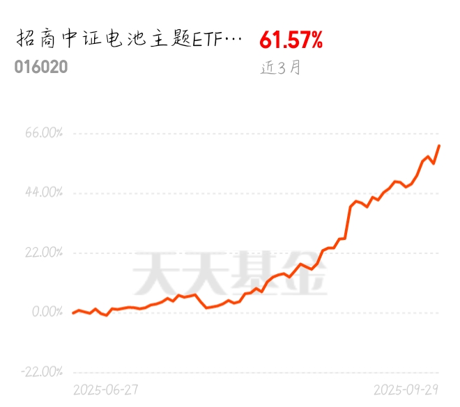 电池板块昨天行情火热,今天指数往上走。指数覆盖动力、储能电池领域,全产业链受益,招商中证电池主题ETF联接C近3个月61.57%,业绩很能打。