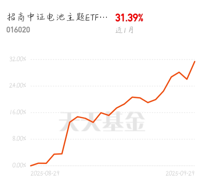 昨天电池板块又冲一波,今天指数持续强势。这指数弹性十足,含大量固态电池股,招商中证电池主题ETF联接C近1个月31.39%,值得关注。