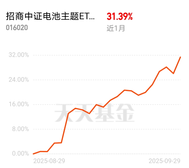 昨晚电池股涨得不错,今天指数延续强势。这指数选的都是优质标的,龙头属性强,招商中证电池主题ETF联接C近1个月31.39%,跟着赚轻松。