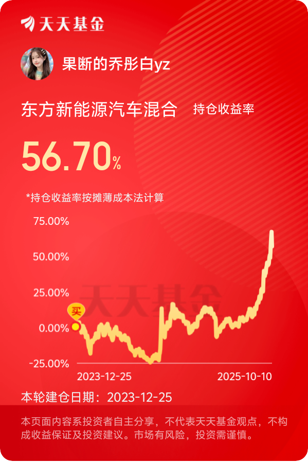 虽然最近震荡频出,但新能源赛道长期逻辑在,继续稳稳拿住,等拉升!$东方新能源汽车混合$ #晒收益#