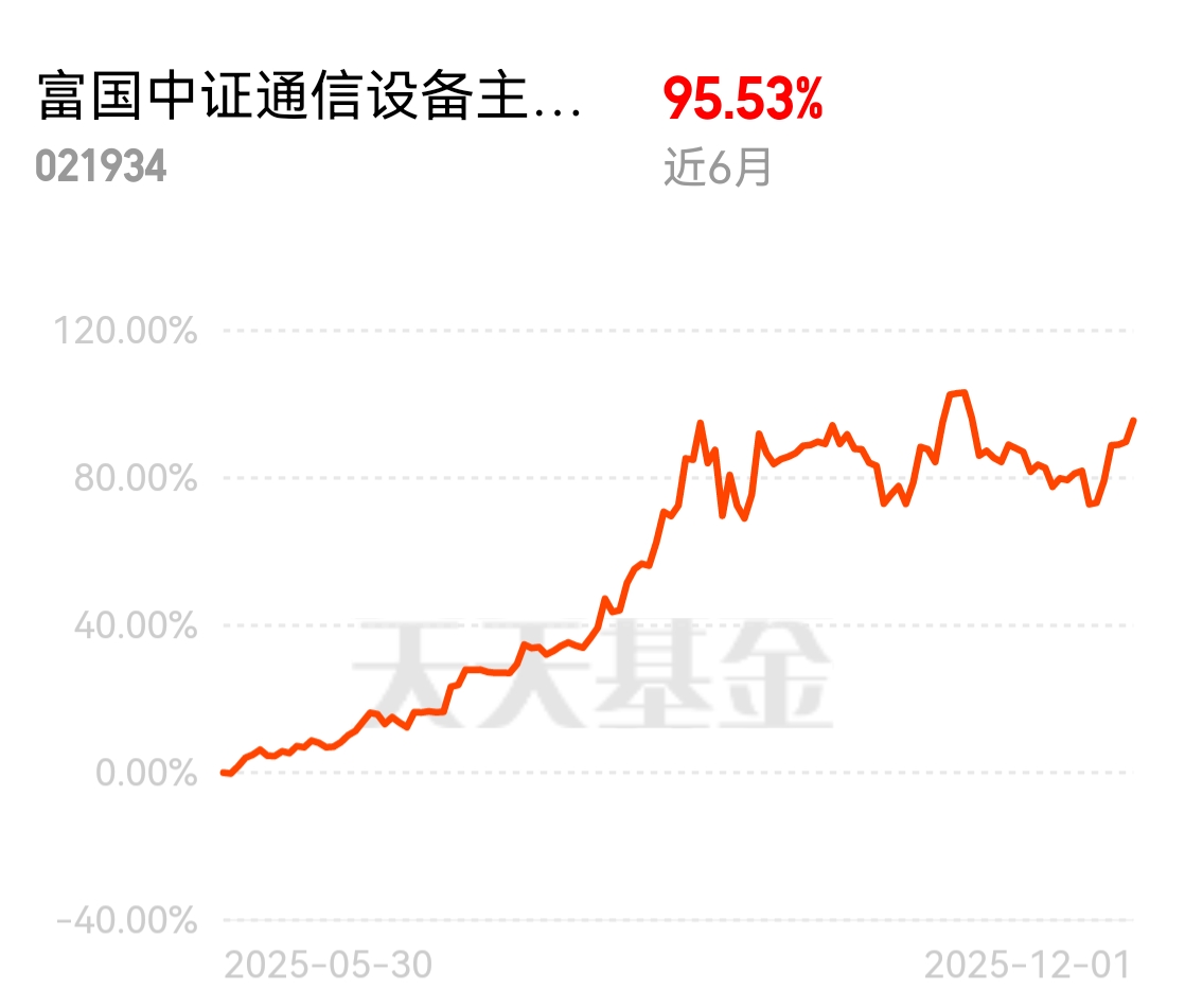 这段时间调仓时注意到,富国中证通信设备主题ETF联接C近1周涨了12.9%,1个月5%,半年收益达96%,领先多数同类;它跟踪的公司这季度净利润环比增11%,估值比过去五年27%的时间还低,回本最快仅55天,配置上更踏实些。