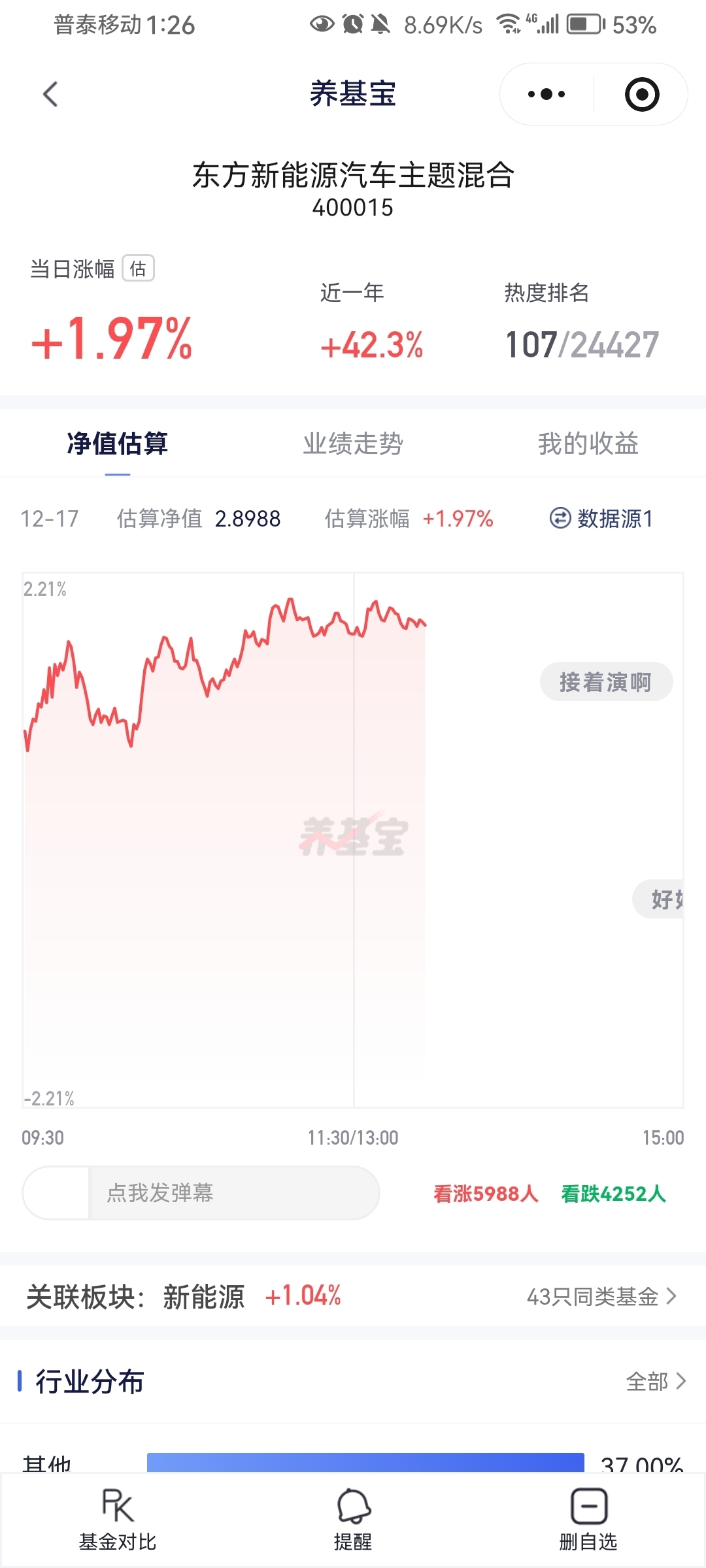 昨天有没有顶不住压力?卖了一丢丢新能源和传媒,没想到今天他俩涨的最好,涨幅都超过了1%,看来机会都得靠自己把握住呀!