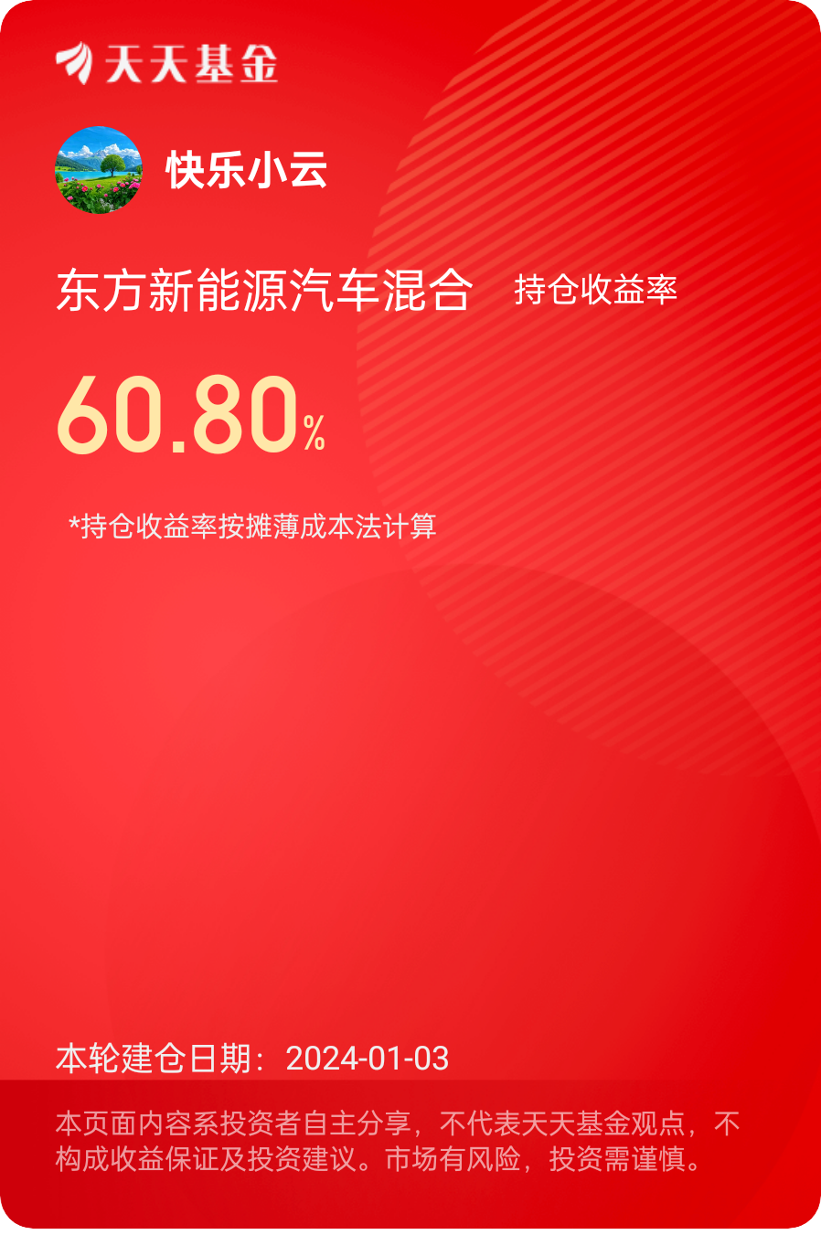 今天新能源扛起反弹大旗,逆势走强超有韧性,节前风格切换清晰,希望下午继续稳住,别掉链子,完美收官!$东方新能源汽车混合$ #晒收益#