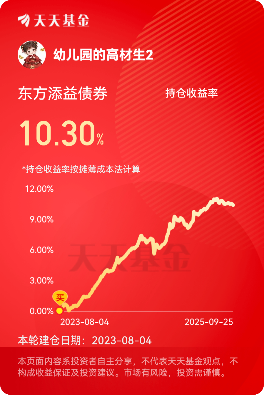 $东方添益债券$一晃又快要到3点了,目前利率债整体小晴天,只要不绿,没啥要求了。