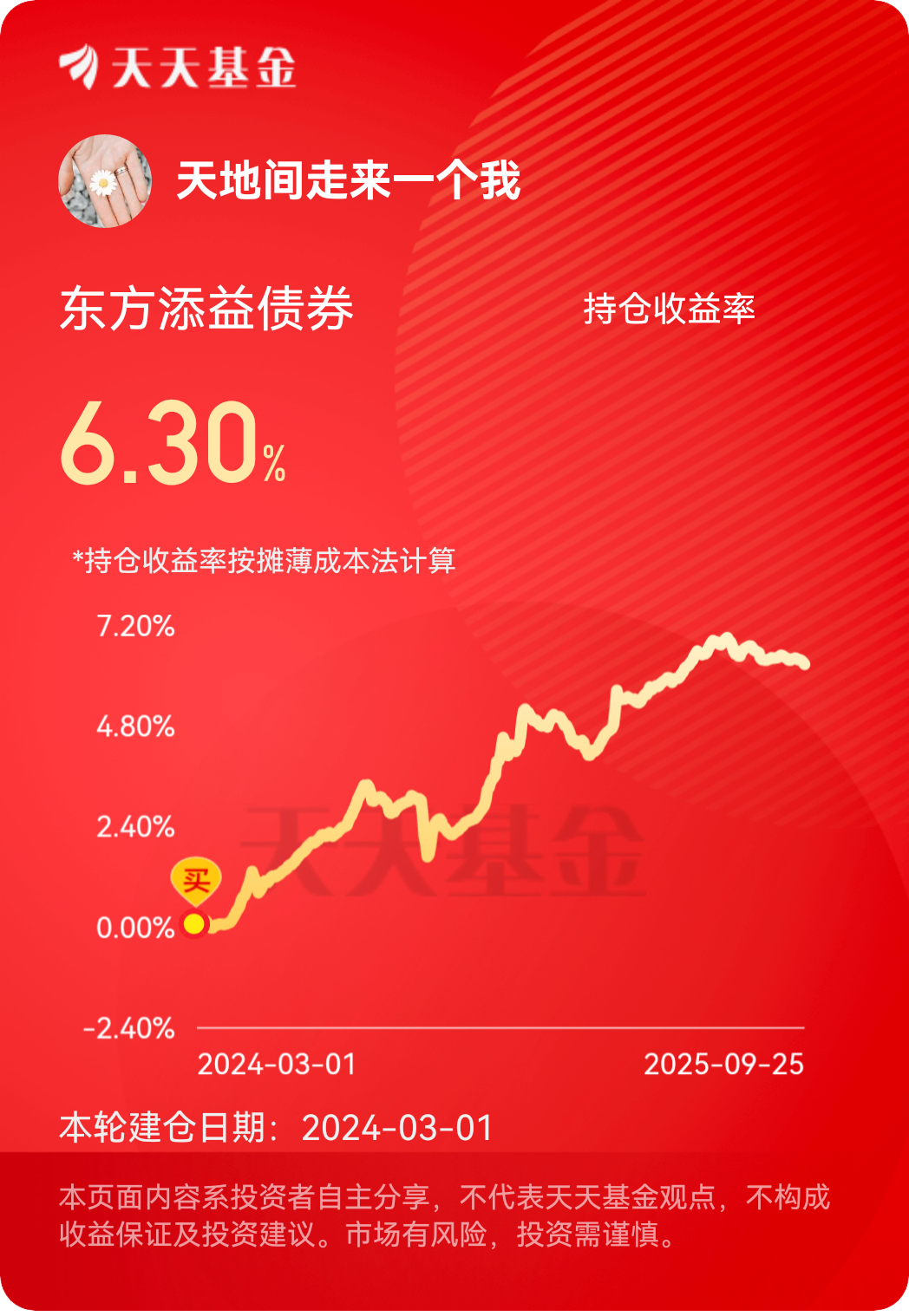 今天债市终于有点红色了,这是要企稳了吗?希望真的坚持下去啊,别一日游了。$东方添益债券$ #晒收益#