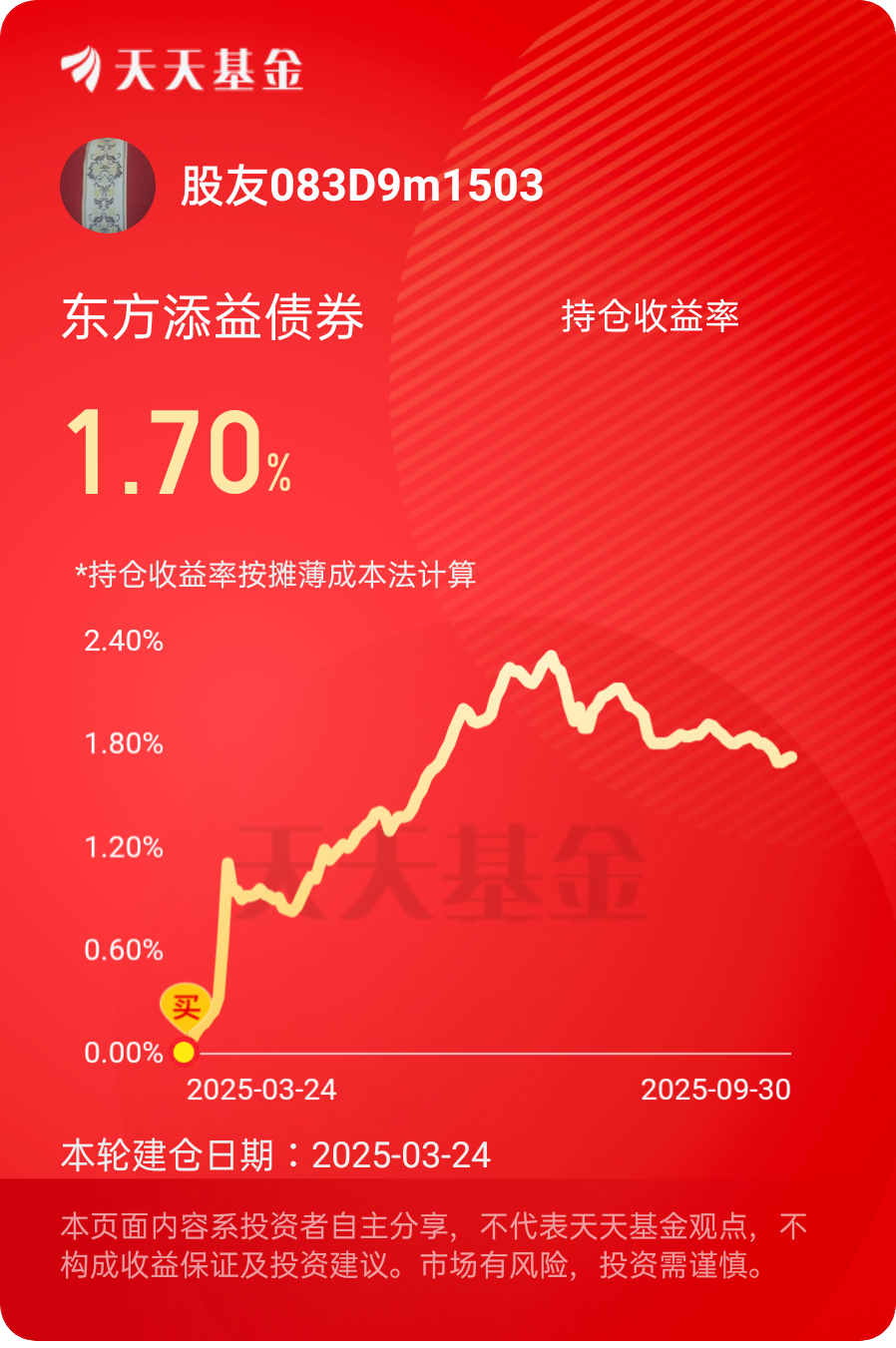 老公说我存钱像蜗牛, 可这债基每月涨百八十块,一年够娃报个兴趣班了, 慢有慢的踏实 $东方添益债券$ #晒收益#