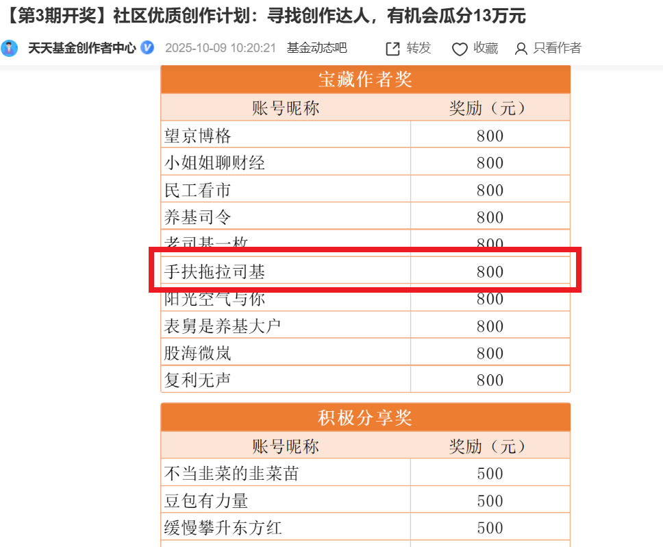 感谢天天基金和兄弟姐妹们的大力支持和鼓励,司机有幸获得2025年天天基金社区优质创作计划【宝藏作者奖】,司机将会继续努力,分享更多更好的文章和优秀的基金。大家一起发财!