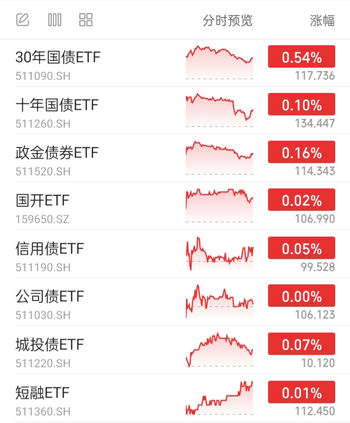 政金债券ETF,代表7-10年中长端政金债基。上涨