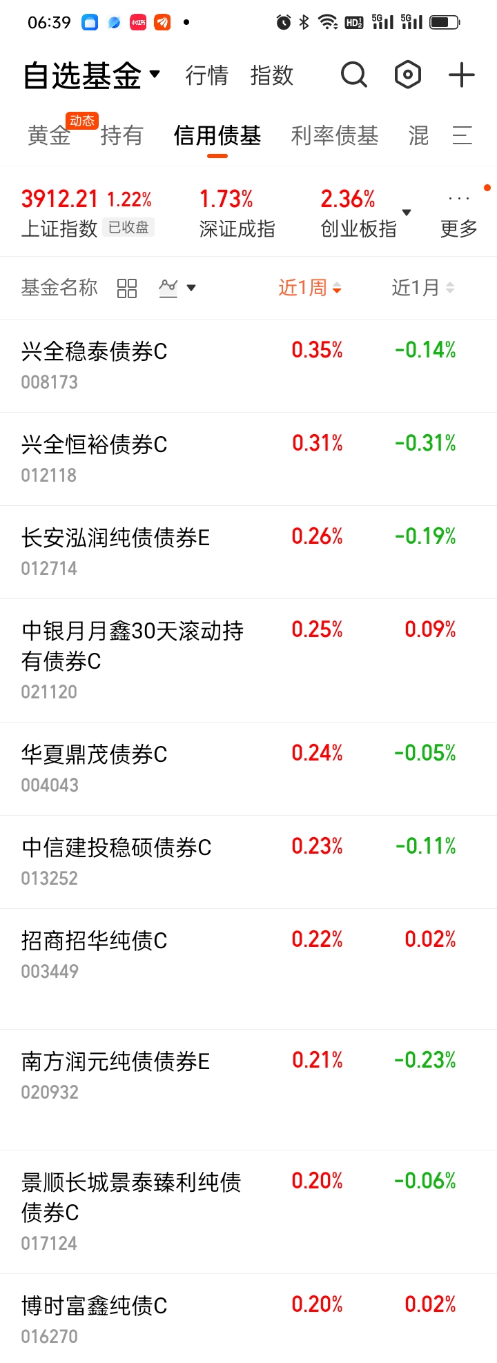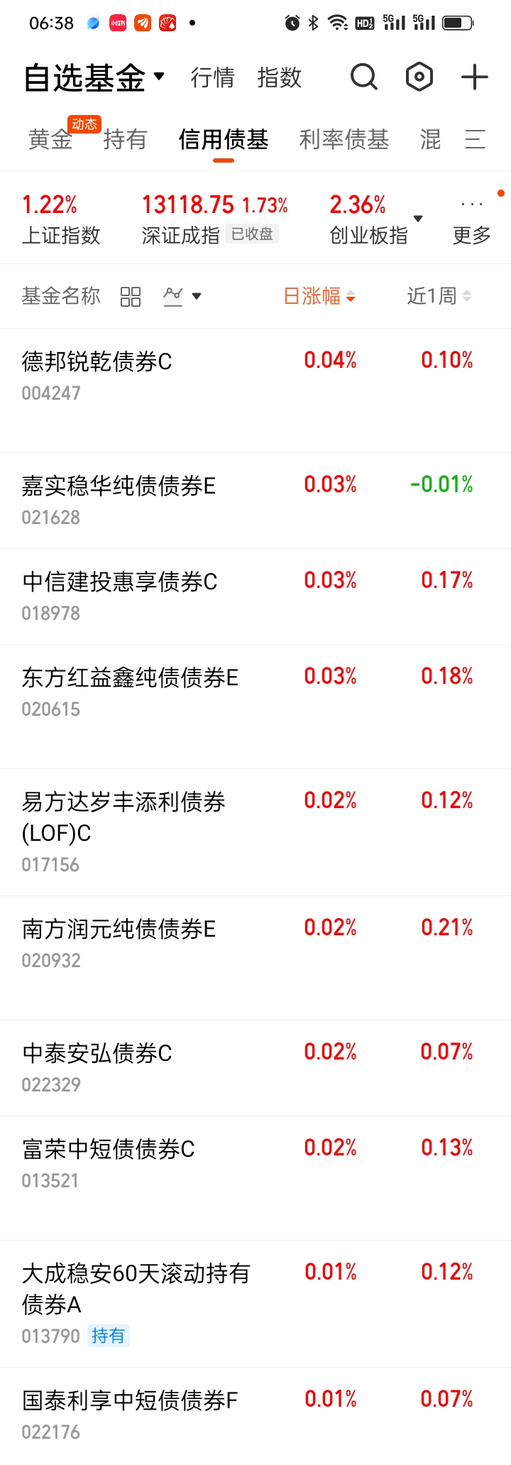 六、债基日涨幅、近1周涨幅排名