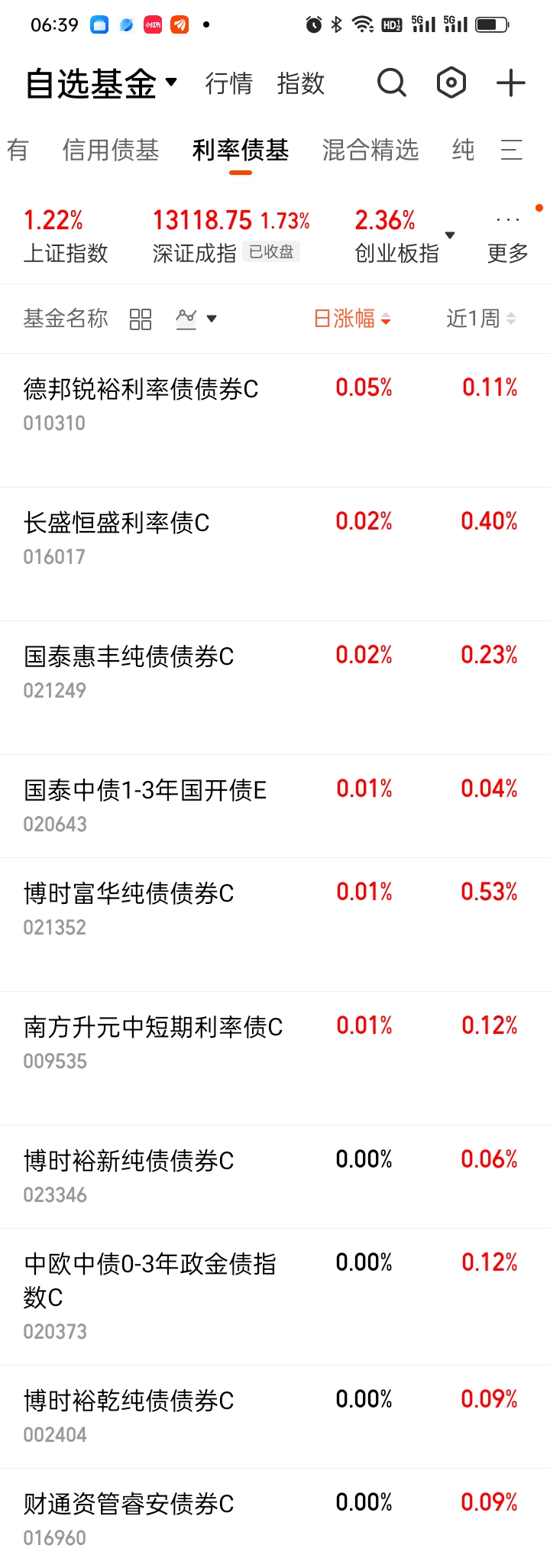 3、利率债基日涨幅排名