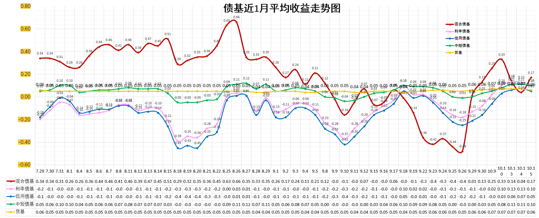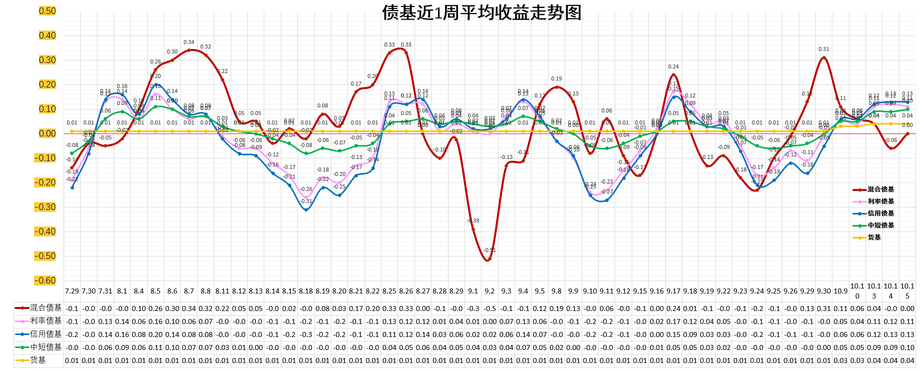 利率债基:0.10%。高于货基。