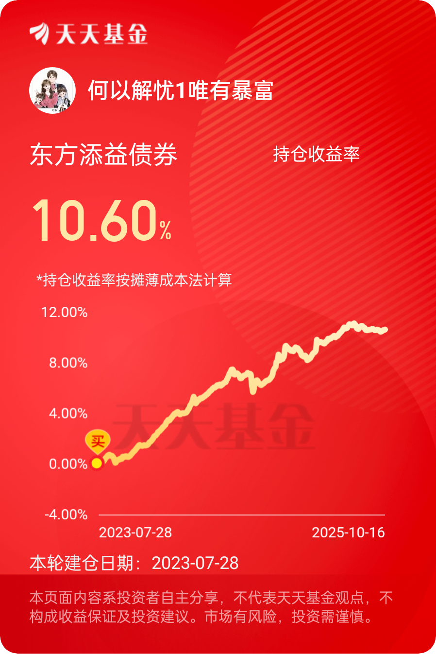 股市继续震荡走低,中小盘跌幅相对更大些。这时候看出债基得安全性了,今天双债晴天为主,下午继续拉升,今天是债市得“疯魔一日”$东方添益债券$ #晒收益#
