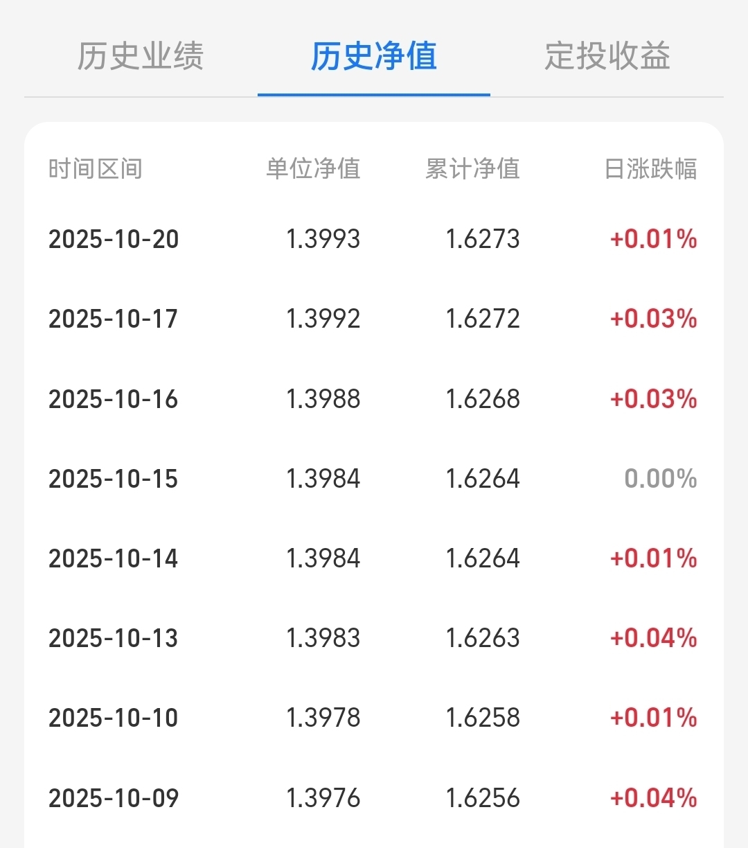 10月以来还没有亏损呢,今天说实话,股市对债市的压制效应可能真的缓和了,搁以前今天股市这表现债市早拉了个大的了,今天还能再挺着,甚至盘中翻红,说明债市情绪已经在这了,就看能不能稳住了!