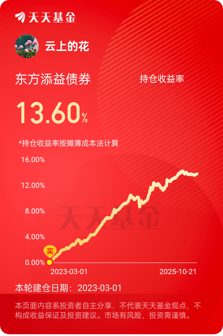 难道昨天债市是诱多的吗?权益涨两天调整就算了,债市也跟着凑热闹,现在股债不跷跷板了吗?到了同涨同跌的情况下吗?期待下午能拉升一些!$东方添益债券$ #晒收益#