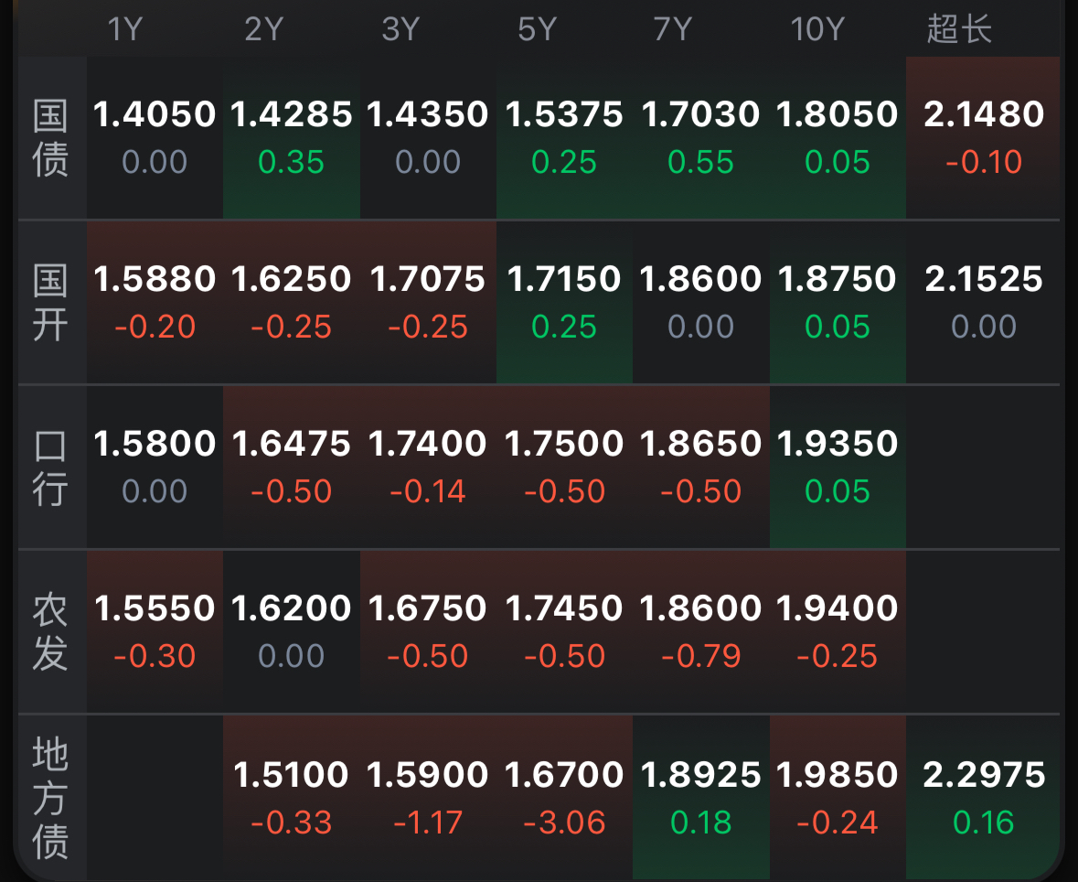 能让市场有点反应还得预期再起、新规落地事件性消息了,今天债市又回到本周一的位置。