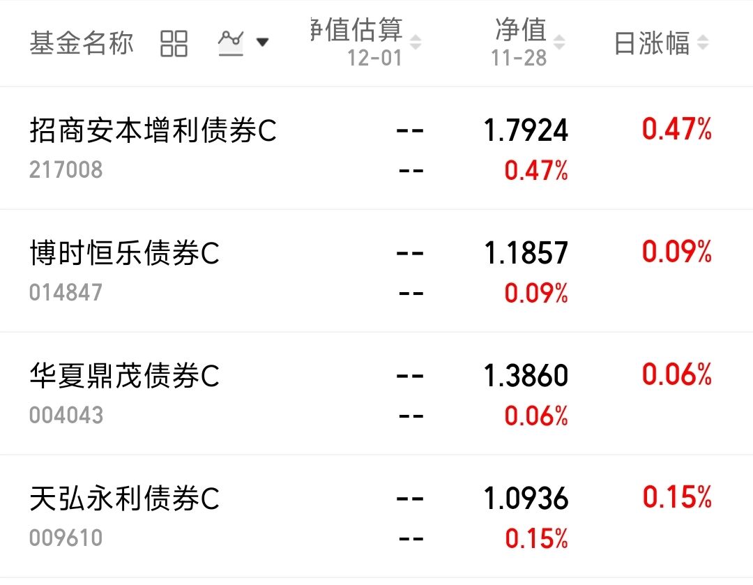 行情不明朗的时候,不想冒大险也不想让钱闲着,偏债基金挺合适的。它不激进也不保守,大部分钱投债券稳拿利息,小部分配点股票赚点弹性。$招商安本增利债券C(OTCFUND|217008)$上周五收了47个蛋。