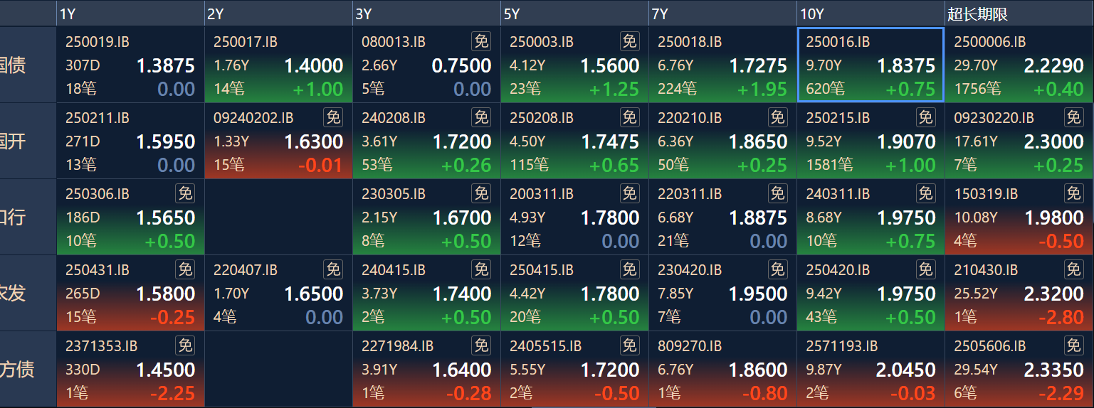 二、十年期国债收益率:1.8375 0.0075%(国债收益率越涨,债市越跌,两者反向关系)