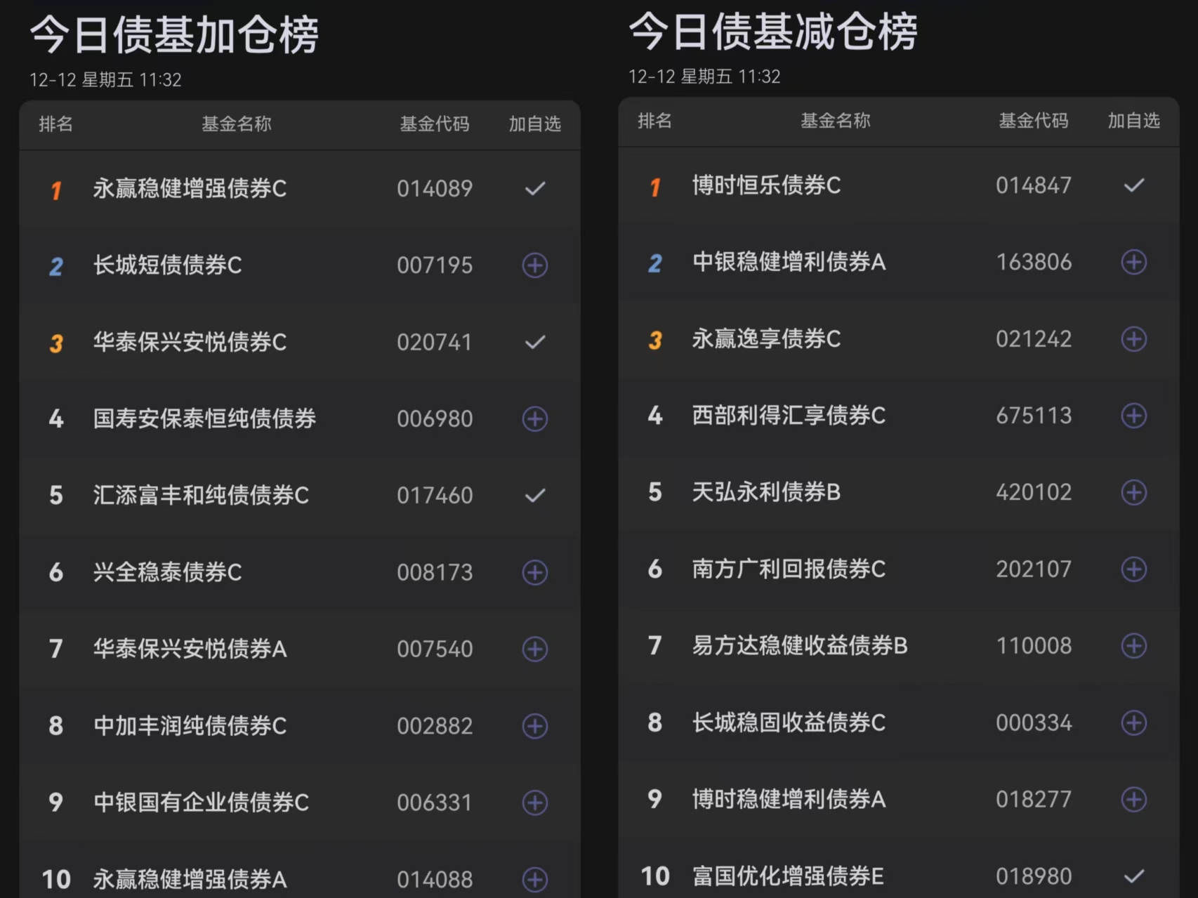 截止11点30分,华子碎19个,南方中债碎3个,方正富邦鸿远碎40个,富国优化增强收10-20个,中邮恒利收15-25个,博时恒乐收2-12个,永赢稳健收20-30个,最终数据已17点收盘为准。