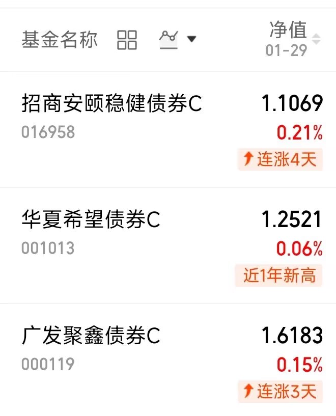 偏债基金的抗跌性是真的好,遇上股市震荡行情,别人的持仓都亏了不少,它不仅跌得特别少,行情好点的时候甚至还能涨一点。这种稳得住的表现,在市场波动的时候特别吃香,$招商安颐稳健债券C(OTCFUND|016958)$昨日收了21个蛋。