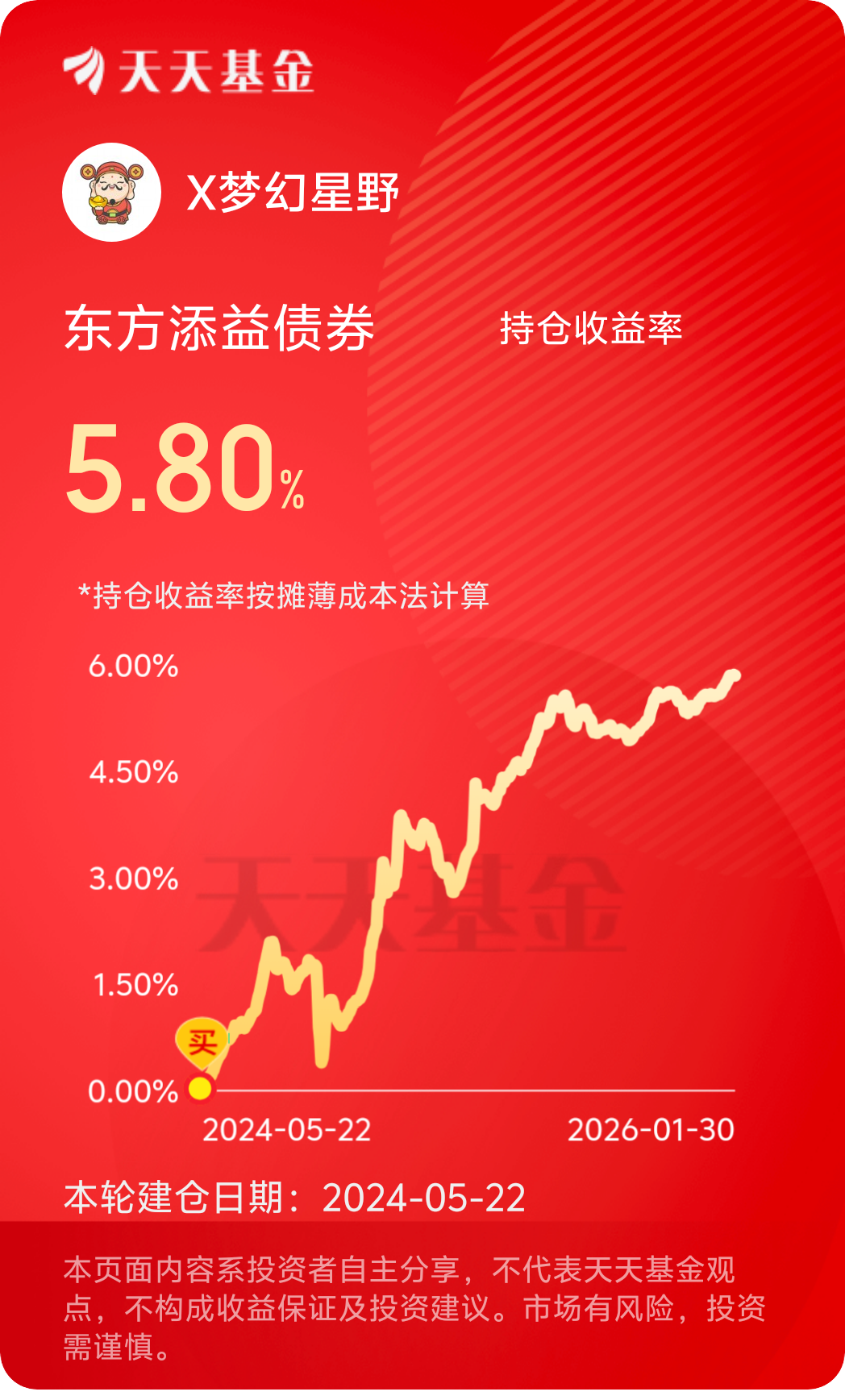 债市总算回暖了,权益市场走弱资金纷纷往债市跑,避险情绪拉满,债基这下又成了稳稳的压舱石!$东方添益债券$ #晒收益#